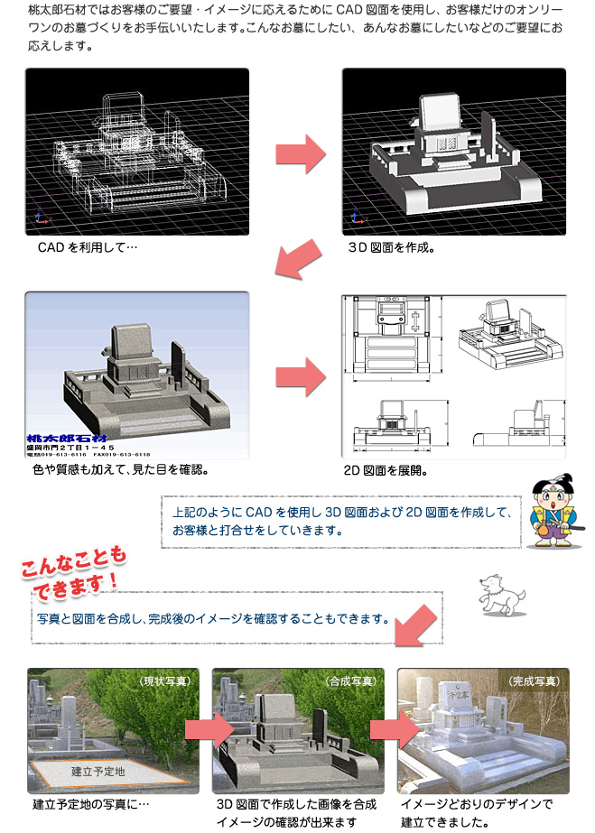 桃太郎石材【本店】 / 岩手県盛岡市門2-1-45 / 電話:019-613-6116 / FAX: 019-613-6118
